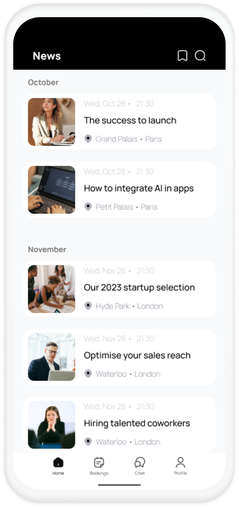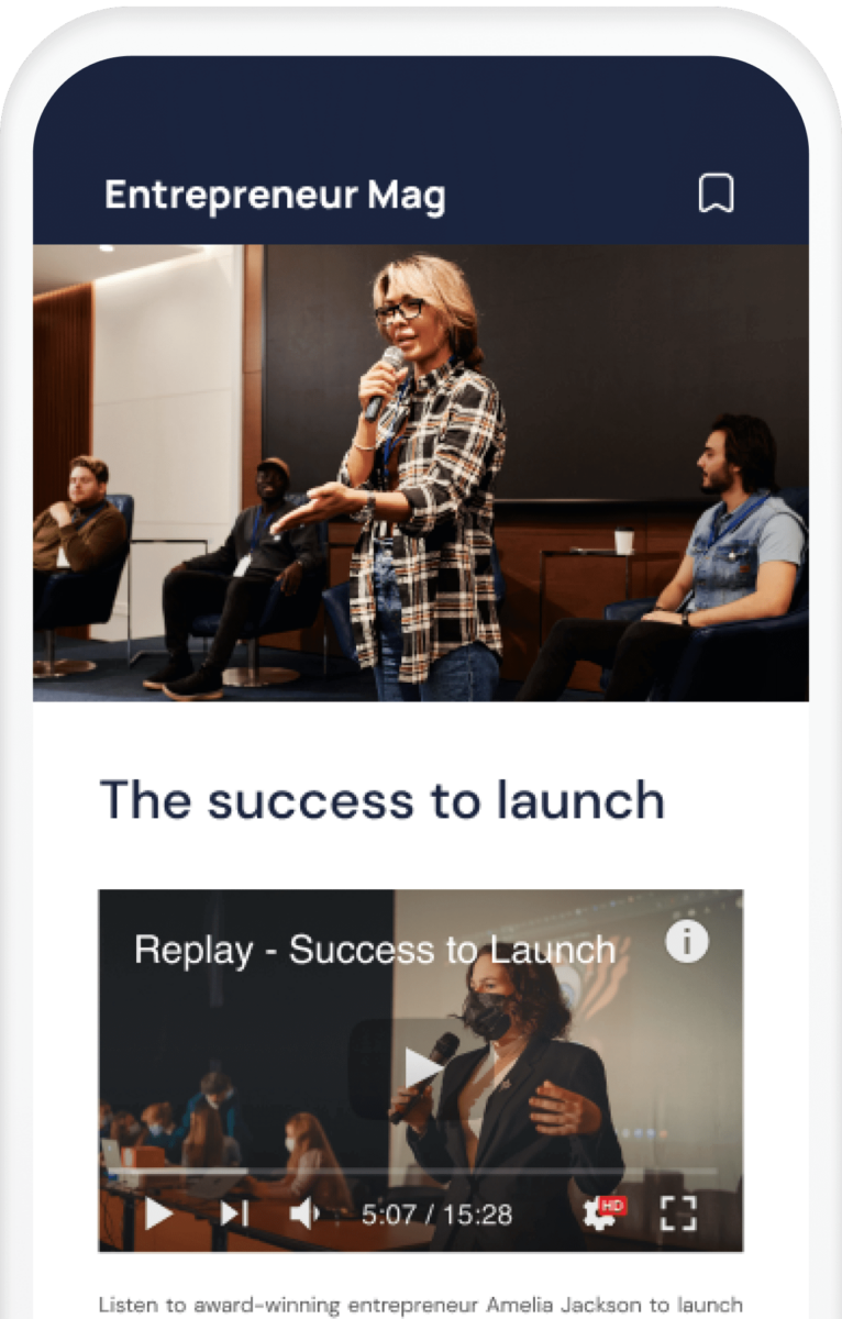 Programmez et affichez facilement vos activités, événements et sessions dans le contenu de votre app pour que les utilisateurs puissent y participer. Affichez vos activités dans votre agenda in-app pour une plus grande participation à vos événements de réseautage, de musique ou de sport.