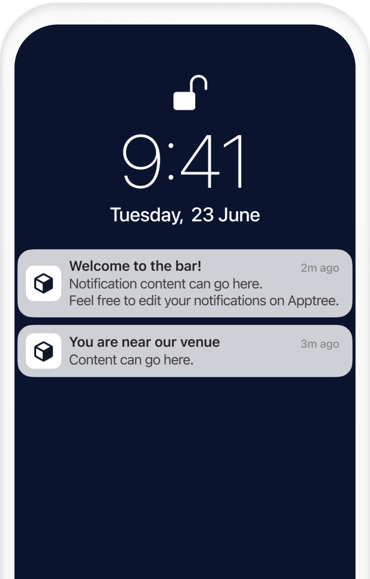 Informez vos utilisateurs. Notifs des sessions, concerts, et sponsors selon la localisation.